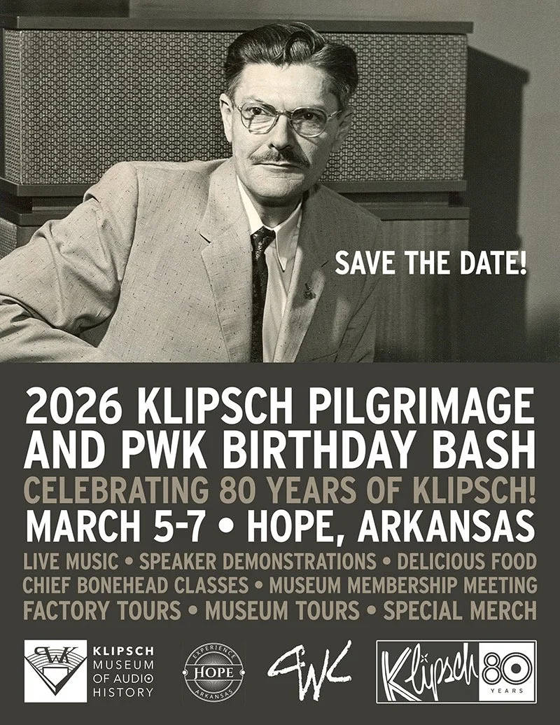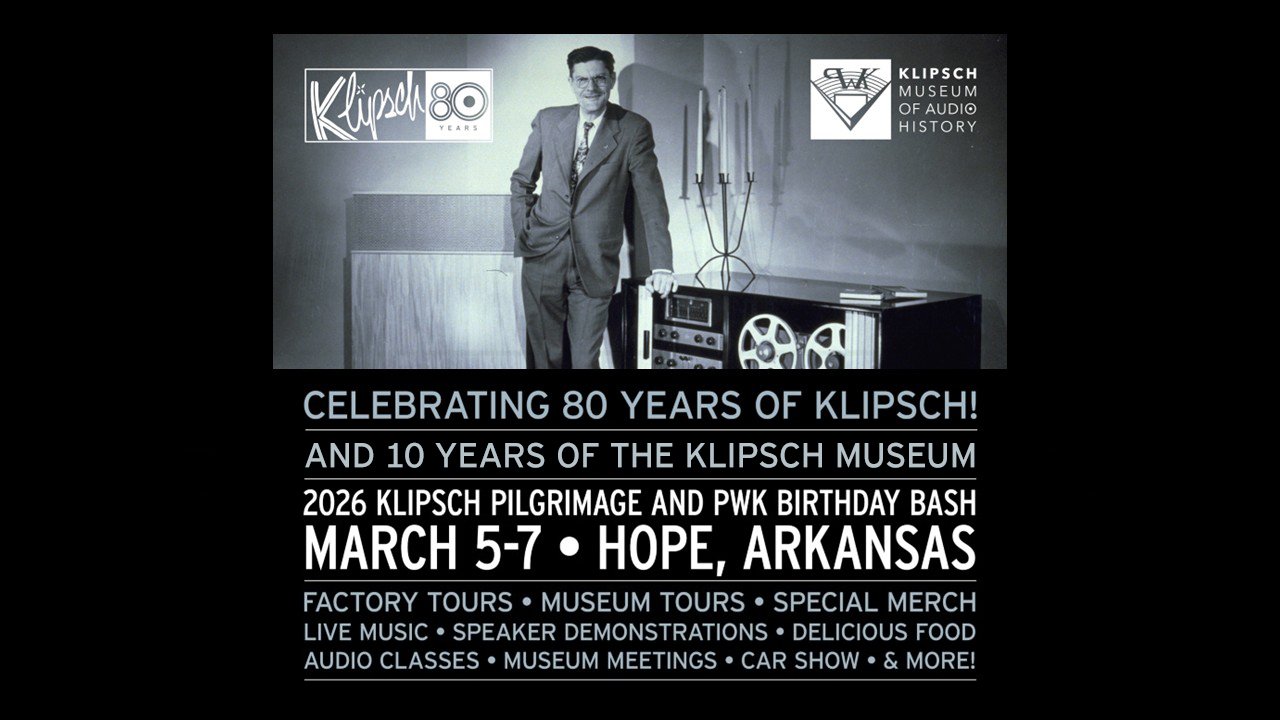 Notice: The Klipsch Museum of Audio History located at 136 Hempstead 278, Hope, AR 71801, is open by appointment! Please email info@klipschmuseum.org to schedule your tour.